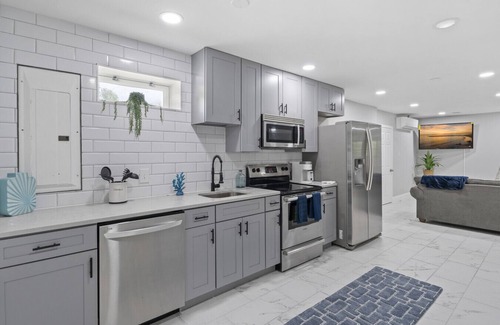 Welcome to Lower Cove Modern Retreat, a cozy Arnold, MD getaway with room to relax! This lower-level retreat offers 3 bedrooms, 2 baths, a full kitchen, and a comfortable living space for gathering after a day of exploring. Enjoy access to 1.8 peaceful acres, perfect for yard games or soaking in nature. Just minutes from beaches, restaurants, and nightlife, it’s the ideal spot for families or friends to unwind and make memories.