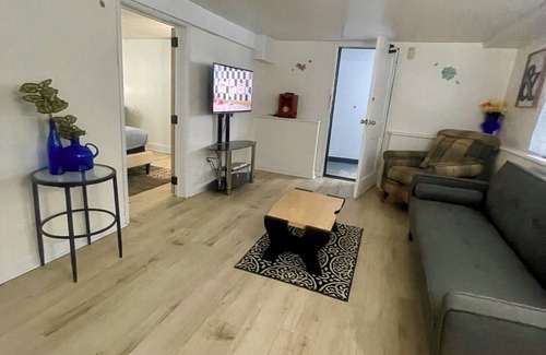 Discover Chicago like a true local in this stylish 2-bedroom lower-level retreat. Perfect for small groups, this tranquil hideaway features a cozy queen bedroom, a twin daybed, and a comfy twin sofa bed in the living room—ideal for up to 4 guests. After a day of exploring the city, relax in the spacious living room or unwind with your favorite shows on the Smart. TV. With thoughtful amenities like high-speed WiFi, air conditioning, and a hair dryer, your stay is designed for comfort and ease. Welcome to your private Lower-Level Luxury Apartment, complete with its own separate entrance for privacy and convenience. Inside, you’ll find: