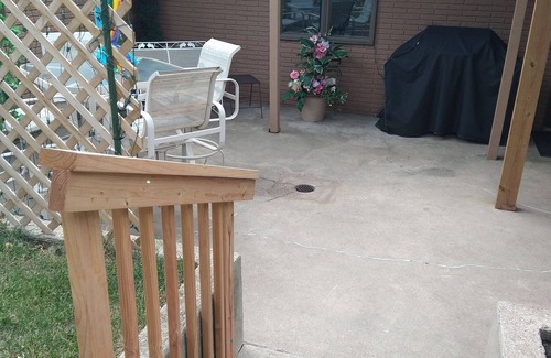 Our space includes two bedrooms: 1st- 2 queen beds, 2nd- 2 queen beds. Enjoy some time out on the patio with a gas fire pit, grill and a cup of coffee or a delightful book. No pets, No smoking indoors.