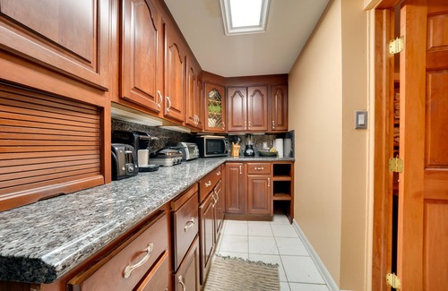 KITCHEN: Cooking basics, refrigerator, microwave, stove/oven, dishwasher, dishware & flatware, blender, Keurig coffee maker, drip coffee maker, ice maker, toaster, toaster oven, spices, water filter
