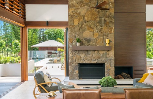 Back indoors you can rest undisturbed in the master suite. A large sliding door brings the serene surroundings indoors, while for a peaceful end to the day the lavish ensuite with bathtub awaits. The indulgence and verdant surrounds don’t stop in the master bedroom as you have three king bedrooms - two with ensuites - while the fifth bedroom houses two sets of single bunks.