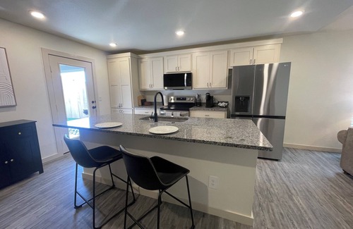 Welcome to your perfect getaway! This modern 3-bedroom, 2-bathroom home offers style and comfort, ideal for families or groups. Relax in the spacious living area or cook up a feast in the fully equipped kitchen. The outdoor space features a grill and patio, perfect for enjoying meals or unwinding after a day of exploring. Conveniently located near local attractions, this home combines luxury with practicality to create the ultimate retreat. Book now for a stay you'll always remember!