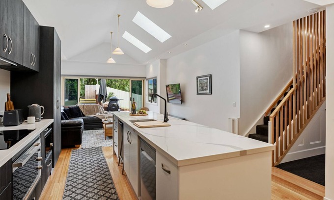 Lucas Street features four spacious bedrooms, including two lavish queen bedrooms on the ground floor and two thoughtfully designed bedrooms with twin beds upstairs, accommodating your family and closest friends comfortably. The two luxurious bathrooms equipped with Tas Oak vanities add a touch of elegance, ensuring a seamless experience for all guests. The open floor plan enhances indoor-outdoor living, allowing you to enjoy the stunning garden scapes and spacious outdoor areas that invite relaxation and celebration alike. With plenty of parking space available, you can host your event with ease and convenience.