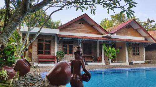 Providing a garden, Lucia Cottages features accommodations in Sukarame. With a private beach area, the 1-star homestay has air-conditioned rooms with free Wifi, each with a private bathroom. The homestay provides private parking, an outdoor swimming pool, and luggage storage space. At the homestay, all units include a terrace. There's also a well-equipped kitchen in some units equipped with a dishwasher, a fridge, and kitchenware. At the homestay, each unit includes a seating area. Carita Beach is a 14-minute walk from the homestay. Soekarno-Hatta International Airport is 82 miles away.