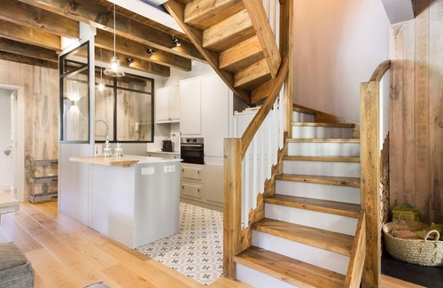 The highlights of this property range from the kitchen with industrial and Provençal touches to the 120 cm fireplace, with old chestnut wood panelling. A 100% LUDERNA Design decoration project to which an article has been dedicated in the magazine "El Mueble" in February 2019.