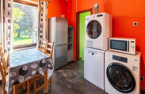 Guests can also enjoy a wellness area with a sauna, and a large garden with a swing, slide, climbing wall, trampoline, football field, petanque, ping-pong, and barbecue. Explore nature via RAVeL, nearby ski trails, or unwind at Robertville and Bütgenbach Lakes. Spa-Francorchamps and local festivals await just a short drive away.