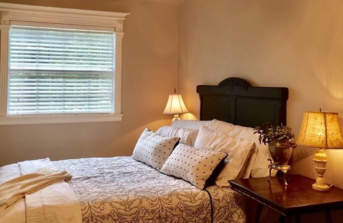 Escape from the city to Three Pines Farm. The Pink Door is an upstairs cozy guest house located in the Pineywoods of East Texas. The sister unit downstairs is the Three Pines Carriage House. Along with great views, we have a country feel, but we are only 6 miles from town. We are conveniently located near Lufkin, Nacogdoches and Lake Sam Rayburn. Note that the farm is on a highway, so some traffic noise is expected. But you will also be treated to the sounds of birds, ducks and frogs singing in the pond. Have a cup of coffee or an evening cocktail in the rockers on the pier. Feed the ducks, fish and turtles. Come relax, renew and enjoy all this area has to offer.