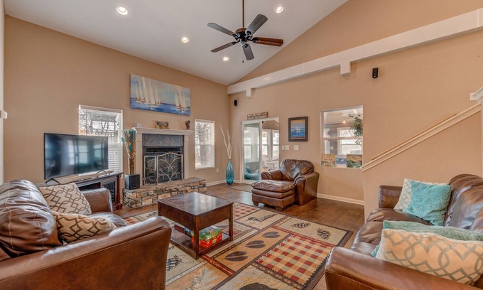 Each condo offers a full kitchen, at least one full bathroom, and additional gathering spaces like patios, decks and spacious loft living rooms and dining areas. There are two large soaking tubs, including a jetted tub for two, and a bonus Murphy bed for a total of 9 bathrooms, 15 bedrooms, 16 beds, 1 pull-out sofa, and optional airbed-in-a-bag kits available for a small rental fee, which include 2 full/queens and 4 twins, and more can be made available by requesting ahead. Ohh, and there's a hidden getaway for kids, plus a secret passage too!