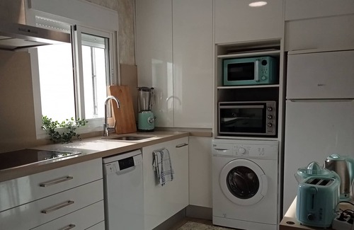 A bright cozy home, with high-speed WiFi ideal for couples, families and digital nomads. There are two private bedrooms (each one has full bed and desk) apart from a living room & american kitchen, as well as one bathroom. The best of it: it's ready to live. Includes from cluttery to washing machine, cleaning products, hair drier, dishwasher.... Perfect for a good night's sleep inside a residential building and a quiet area. And you are only 7 minutes away from La Alameda (night city center), 5 minutes from La Cartuja and Isla Mágica theme park, and only 20 minutes WALKING to the old city center.
