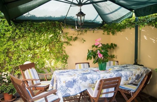 The apartment "Luna" is on the first floor of a nice villa with a garden all around located in a charming central area with other beautifull villa and houses, close to the beach and a short walk to the pedestrian area with shops, pubs, restaurants etc. It has its its own individual gate with the possibility of enyoing the garden. It consists of one bedroom with a double bed, a living room with a double sofa-bed and open kitchen, a wide shower room. Wifi. Tv. air conditioning