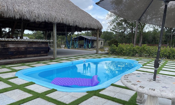 Yes, this Luna’s Ranch has a swimming pool. Check the Facility Overview section for details about the pool and other available facilities.