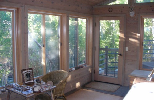 This spectacular custom home built in 1992 features 3 bedrooms. The spacious Living-Room has very high ceilings, and wrap-around windows with mountain views, and an enclosed fireplace. The Solarium overlooks Mill Creek, which flows though the property. The house has Cable TV and WiFi. The master bedroom suite has walk in closet, glass-enclosed shower, and jacuzzi with a view. Two bedrooms are upstairs, with 1 1/2 bath, and an office area with roll-out Queen bed. (house sleeps 8) A complete kitchen and laundry room are downstairs, and a redwood deck overlooks Mill Creek.