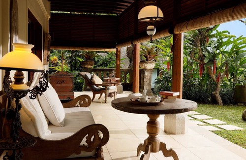 Designed by Made Wijaya, world renowned tropical garden designer and architect, The villa astonishes at first impression with its cascading layout, Indonesian heritage inspired design and enchanting garden. Occupying 2,800 square meters of the best of Ubud wilderness, this double-pavilion expanse boasts three bedrooms, an outdoor infinity pool with a stand-alone dining quarter. Each pavilion combines traditional thatched roofing, the luxury of space and elegant comfort to remarkable effect. The main pavilion is a double storey abode with a palatial infinity living room on the top floor, overlooking the panoramic view of lush tropical greenery. Inspired by the rich tapestry of aristocratic past, the interior is enriched with antiques, wooden furniture with intricate carved details and noteworthy art pieces. Every living space opens out to the enticing outdoor setting, where sprawling tall trees and exotic flowering plants frame the perimeter of the compound. Popular Monkey Forest, Campuhan Ridge Walk and funky cafés are a comfortable distance away on foot.