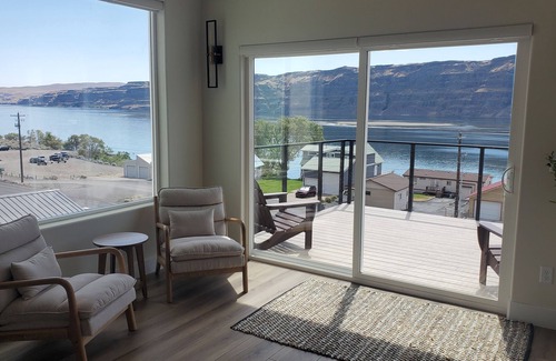 This spacious 3,600 sq ft residence offers panoramic views of Lake Wanapum, setting the stage for serene mornings and golden sunsets. With 3 beautifully appointed bedrooms (1 king, 2 queens) and a queen sofa bed in the private office, the home comfortably sleeps up to 8 guests — perfect for family vacations, concert weekends, or wine-tasting escapes.