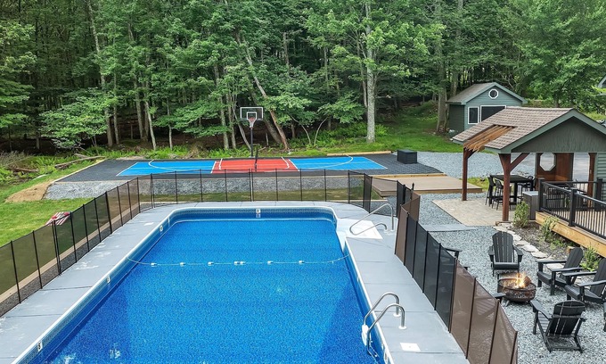 LUX Heated Pool, Pickleball, Arcade, Hot Tub, Sauna has 8 Bedrooms , 5 Bathrooms, and max occupancy of 22 people. The minimum rental for this property is 1 nights, but this can change depending on the season you plan on staying. Previous guests have given good rated it, and VRBO labeled it a top-rated House because of the excellent services rendered by the owner or manager of this House, and has consistently provided great experiences for their guests. Most families or guests that use it recommend it to their friends and some of them are repeat guests. House has a friendly neighborhood, and the Canadensis has interesting places to visit. If you want to learn more about the House in Canadensis, such as places to visit and things to do nearby, you can check below to learn more.