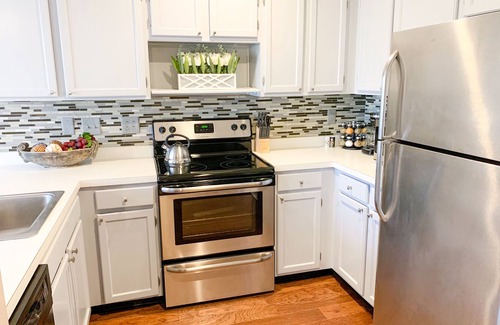 Come home! This stunning 2 bedroom 2.5 bathroom townhouse is located in the quiet Woodcroft neighborhood. This townhouse sleeps 7 people (1 King, 1 Queen, 1 Twin and 1 queen sized sleeper sofa). Staying here comes with access to the six miles of walking/biking trails in the communities more than 200 acres.