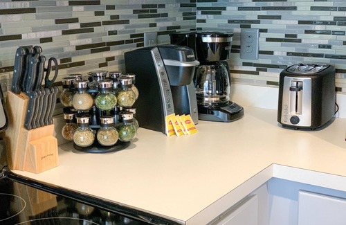 -The kitchen is stocked and ready for you to use.