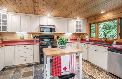 For those looking to host a special event, the lodge offers a beautiful setting for **family reunions** or **wedding parties**. Step outside onto the deck to take in the private views of the surrounding woods, or sip your morning coffee while watching the birds. The spacious **primary suite** on the main floor provides a luxurious retreat, while the loft bedroom offers privacy, a full bath, and its own private balcony. The **fully stocked kitchen** is perfect for preparing group meals, and the large dining areas make it easy to enjoy meals together.