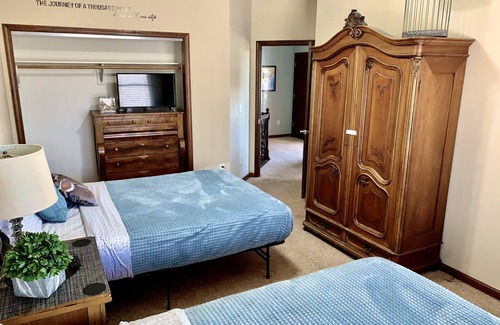 -2 Queen suites with attached Bathroom Upstairs w total of 3 Queens