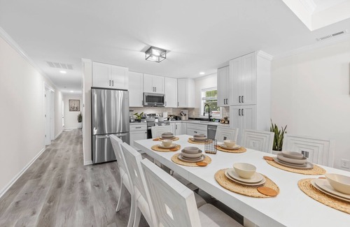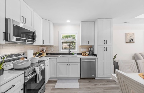 Welcome to your ultimate Charlotte retreat! This beautifully furnished 3-bedroom, 2-bath oasis offers the perfect balance of relaxation and entertainment for families, groups, or business travelers seeking comfort and style. Step into a bright and modern interior with an open layout that connects a chic living room, dining space, and fully stocked kitchen featuring stainless steel appliances, elegant cabinetry, and sleek countertops.