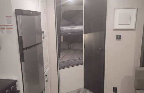 Your Uniondale adventure begins at this superb 1-bedroom mobile home. With 1 bunk bed and 1 queen bed, guests can cozy up after a day of exploring. This adorable property also features a living room with an extra twin bed for added comfort. Heating, AC, and an iron are provided for your convenience. Fall in love with Uniondale and enjoy the magic it has to offer.