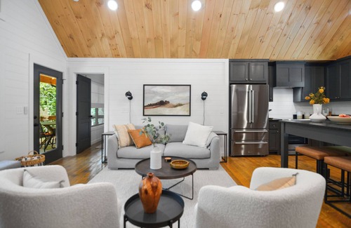 Step across the threshold into a world of contemporary elegance, where modernity seamlessly marries rustic charm. You will be welcomed by the look of freshclean air, stunning decor, quartzite and honed granite countertops and beautiful light fixtures that provide the perfect ambiance for your getaway.