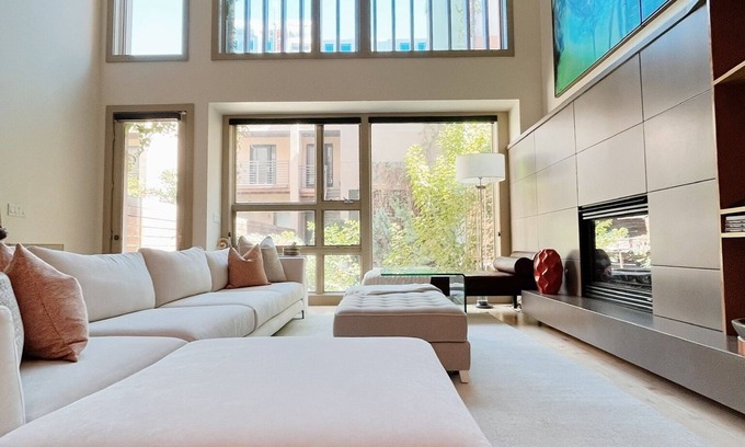 The Art House in Denver's chic Golden Triangle neighborhood is a 6-story masterpiece built around a central grand staircase illuminated by a glass rooftop. Top floor roof deck and 5th and 6th floor mountain view decks with comfy outdoor furniture for sunset views and gatherings.