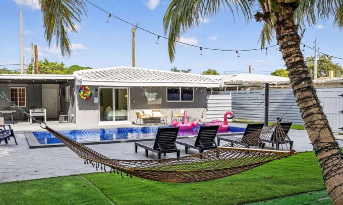Welcome to your Miami oasis! This stunning 4-bedroom, 2-bathroom home is the perfect getaway for family vacations, group trips, or weekend escapes. Located just 5 minutes from Miami International Airport, this property features a private pool, hammock lounge under palm trees, and fun games for all ages — all wrapped in a modern, tropical vibe.