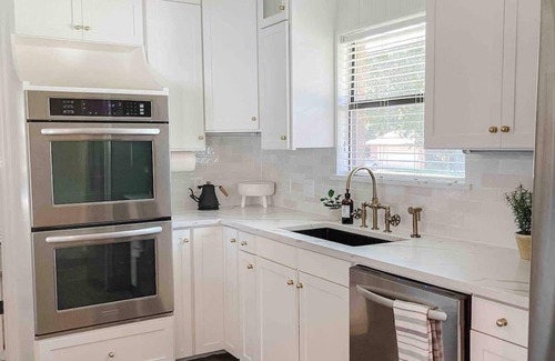 At this stylish 4BDR Cape Cod-inspired retreat just minutes from DFW, spend the day poolside, walk to Grapevine Lake, or head into town for wine tasting and boutique shopping. When you're not exploring the trails or the historic downtown, fire up the Jacuzzi, lounge beneath the trees, and channel your inner gourmand in our swoon-worthy kitchen. A perfect, luxurious spot near the lake—great for family gatherings, couples trips, and laid-back friend weekends alike.