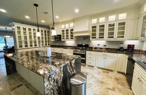 Welcome to Luxe at Pinnacle, a 6000 square foot luxury new construction home that sits on 5 acres. The massive kitchen with tons of counter space is a chefs dream. On the property is a pond under the wooded canopy of large trees that is stocked with fish. We would be glad to host your corporate event or wedding. If hiking Pinnacle is your thing, you can literally start your hike from the house because you are only 1 mile from the park.