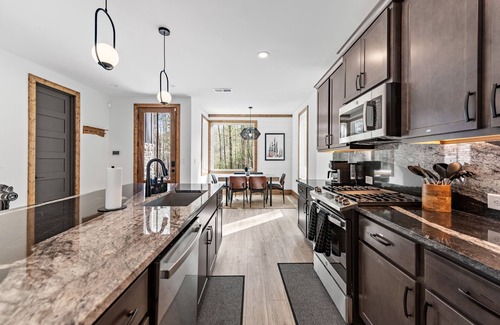 Our chalet is designed to impress with its sleek, modern aesthetic, soaring vaulted ceilings, and chic furnishings layered throughout. Spanning three levels, the home provides ample space for families and groups to relax, unwind, and enjoy every moment. Two separate living areas and two spacious decks allow for both intimate gatherings and larger group entertainment.