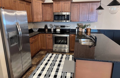 Welcome to our elegant and luxurious new build town home that is in a quiet and safe neighborhood perfect for work and family trips. Our home is a ZERO entry 1,200 sq ft with no stairs. It boasts 2 bedrooms (KING size bed in each room), large livingroom couch , 2 bathrooms, large family room/dining area and a fully equipped spacious kitchen. It is close to the highway and is minutes from Sam's Club, Walmart, Target, Hyvee, Trader Joes, Costco and Walmart and various dining places. Only 7 miles from downtown. Come relax and enjoy your stay!