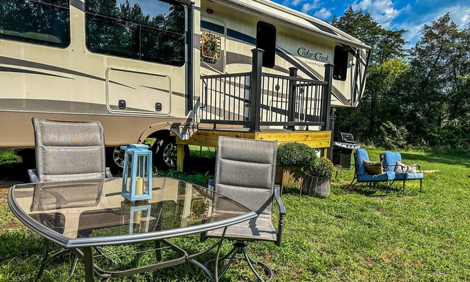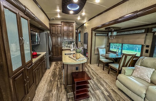 This updated RV retreat boats spectacular views of pastures with a private animal sanctuary, to relax and unwind.