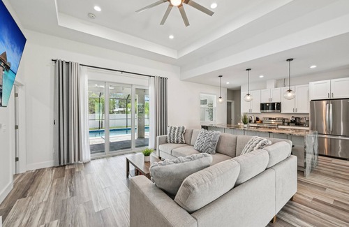 Book our new 3-bed, 3-bath house for ultimate comfort and luxury. Enjoy an oversized lanai, HEATED SALTWATER POOL & SPA, and dream vacation amenities. Located ~4 minutes away from I-75 (~2 miles, no interstate noise) and a short drive to some of the best beaches in the country, including Siesta Keys, Nokomis and North Jetty Beach. Immerse in the ultimate relaxation at the Warm Mineral Springs, a mere 14-min drive. Tamiami Trail, 3 miles away, offers endless shopping, dining, and entertainment. Welcome to the pinnacle of vacation living.