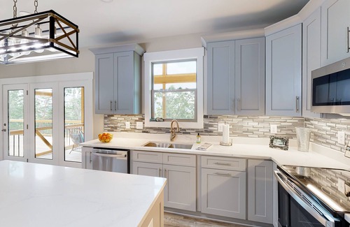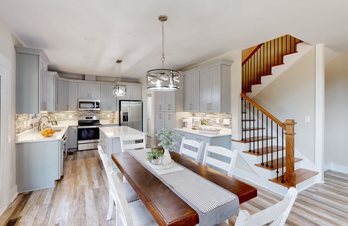 When you're ready to relax, head inside the new home interior of Rockview to relax, cook, dine, and cool down. The living room offers a cozy place to sit back and stream, whereas the chef's kitchen is illuminated by a gleaming backsplash, ample meal prep space, and stainless steel appliances. When you'd like to elevate your cooking, utilize the provided gas grill. When it's time to eat, dine as a family around the formal dining table or on the screened-in porch with views of the Northwest Georgia Mountains.