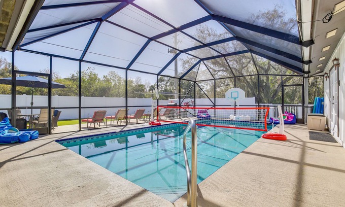 - Heated saltwater pool w/ screened-in lanai & pool toys (heated to 90 degrees, depth 4’-5’)