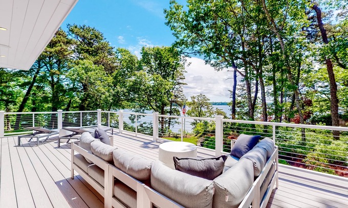 Luxe lakefront home on Follins Pond with private beach, amazing decks & yard | House in Yarmouth Port