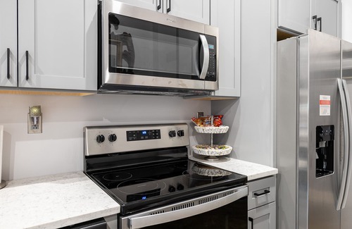 • Fully stocked kitchen with cookware, dinnerware & a coffee station (pods, grounds, creamers & sweeteners)