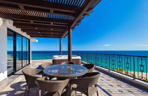 Walk directly from your luxury suite right onto the beach when you stay in this 2 room condo resort-hotel suite. These spacious and luxurious bedrooms come equipped with ensuite bathrooms and all the amenities you’d expect at an all inclusive luxury resort. The incredible sea views from your suite are incomparable. You’ll love every minute in the jacuzzi on your terrace and the unique services of aromatherapy.