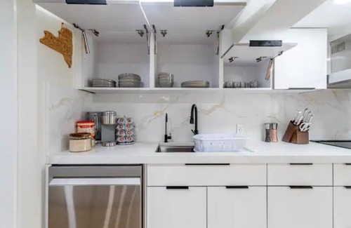 The streamlined kitchen comes fully equipped with high-end appliances, utensils, cookware and dinnerware along with a well stocked Keurig coffee bar to help kickstart your day. Eat at the dining table or if you’d rather eat out, walk to a handful of restaurants or drive into the heart of the city in just 5 minutes.