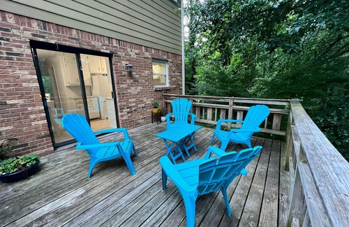 Wheater you are traveling for work, pleasure or a getaway this chic luxurious townhouse is the perfect space. A 2 bedroom/1.5 bath renovated townhouse nestled right next to a stream sitting on 1 acre of forest land. Located in the suburban city of Lilburn, 4-minutes from grocery stores, water parks, and community areas. 10 min to stone mountain, 30 min to downtown. The townhouse is approximately 1000+ sq ft with WIFI, a kitchen, washer + dryer, a private deck, and onsite parking.