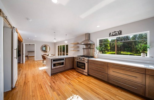 There’s also a well-stocked local market and wine/liquor shop less than 10 minutes away, perfect for grabbing steaks, snacks, or your favorite bottle of wine. Grill outdoors on the spacious deck while the kids play yard games or relax by the pond and patio. Depending on the season, guests can enjoy horseback riding or sleigh rides at nearby ranches.