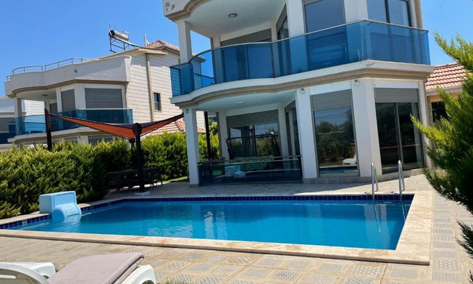 This 4 Bedrooms Villa is suitable for tourists and travelers. It has several amenities that would guarantee your comfort. These amenities include: Air Conditioner, Parking, Pool, and several others. This is a good star rated property and has over 1 review with the average score of 9 . Coming to Didim and needing a place to stay? Be it for work or for leisure, consider staying at this Villa for your next visit, you will surely love it.