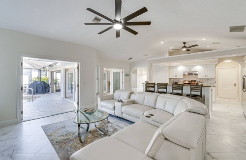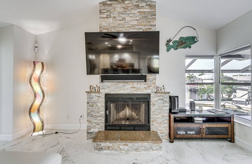 Plan your Southwest Florida retreat to this expansive 4-bedroom, 3-bathroom Port Charlotte home nestled along the shores of the Myakka River. Visit the Fishermen's Village, tan at the Port Charlotte Beaches, and gaze out at the canal views while lounging poolside in the private yard. With enough space to sleep 8, this luxurious 2,625-square-foot waterfront vacation rental boasts 3 Smart TVs, a caged saltwater pool and hot tub, and a private boat dock and lift right on the wide canal.