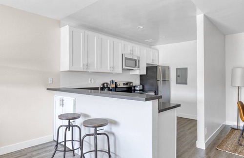 As with any Blueground apartment, you’ll find a thoughtfully designed space complete with beautiful furniture and a fully equipped kitchen in this two bedroom property. And, thanks to our superior quality mattresses, luxury linens, and towels, you can relax knowing you’ll always feel comfortably at home. When you’re ready for some fun, you can take in the Los Angeles vibes or bring the entertainment to you with the premium wireless speaker or smart TV. This apartment also offers in-apartment laundry.