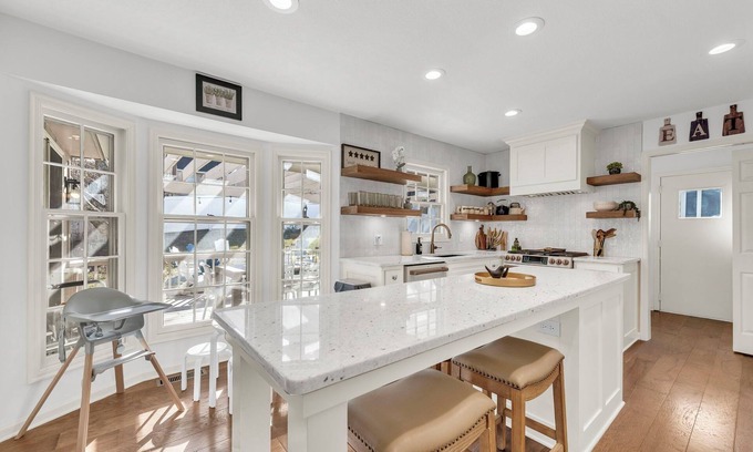 • Whether you’re cooking up a feast or just sharing a casual meal, this kitchen is designed with you in mind. With stunning GE Café appliances, elegant cabinetry, and a spacious island with seating for 4, meal prep and gatherings will feel effortless. Plus, the kids’ table and Stokke high chair ensure even the youngest guests are included. Start your morning right with the stocked coffee and tea station—you’ll have everything you need to brew your perfect cup.