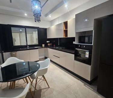 Luxueux S+2 Menzah5 is located in Ariana, just 11 miles from Salammbo Tophet Archaeological Museum and 2.9 miles from Belvedre Parc. This property offers access to a balcony and free private parking. Outdoor seating is also available at the apartment. With free Wifi, this 1-bedroom apartment features a flat-screen TV, a washing machine, and a fully equipped kitchen with an oven and microwave. The accommodation is non-smoking. Cathedral of St. Vincent de Paul is 3.7 miles from Luxueux S+2 Menzah5, while Bab El Bhar - Porte de France is 3.9 miles from the property. Tunis–Carthage Airport is 2.5 miles away.