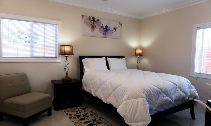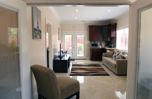 Upscale Newly Built! 600sqft. Beautiful In-law unit in the heart of Silicon Valley. One mile away from Faceb00k and minutes away high tech companies, right next to hwy 101 & public transportation. Guest house has its own wet bar, microwave, refrigerator.