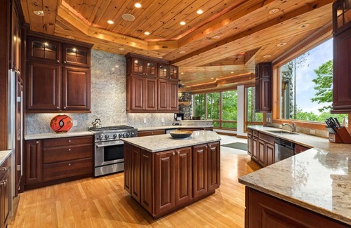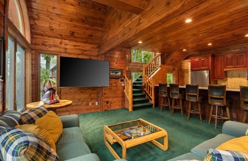 This incredible vacation lodge has amenities that you can’t find anywhere else, including a full Dublin-style pub with pool table, a full game room, sauna, steam room, surround-sound home theater with 120-inch screen & stadium seating, hot tub, fireplaces throughout, and a spectacular dock on the property’s over-100 feet of exclusive shoreline. The main house & charming carriage house provide a total of 9 bedrooms,12 Baths, and can sleep up to 22 guests.