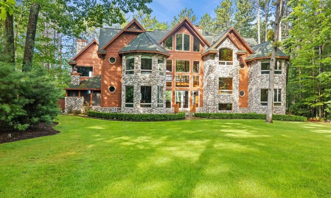 Escape to northern Michigan to stay in this one of a kind, luxurious lake home on Mullett Lake.